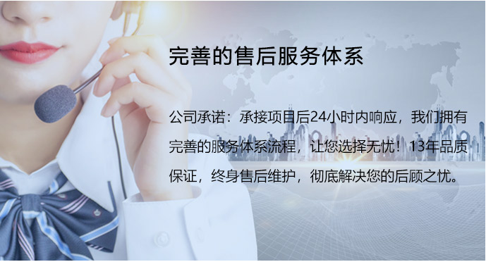 公司拥有完善的服务体系流程,让您选择无 忧!13年品质保证,终身维护,彻底解决您 的后顾之忧